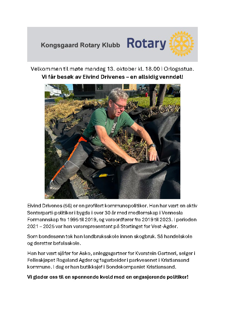 KONGSGAARD ROTARY KLUBB ØNSKER DEG