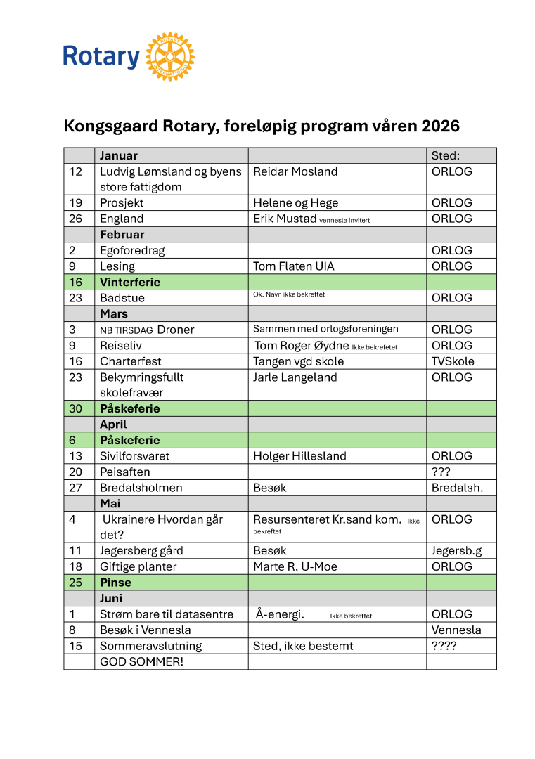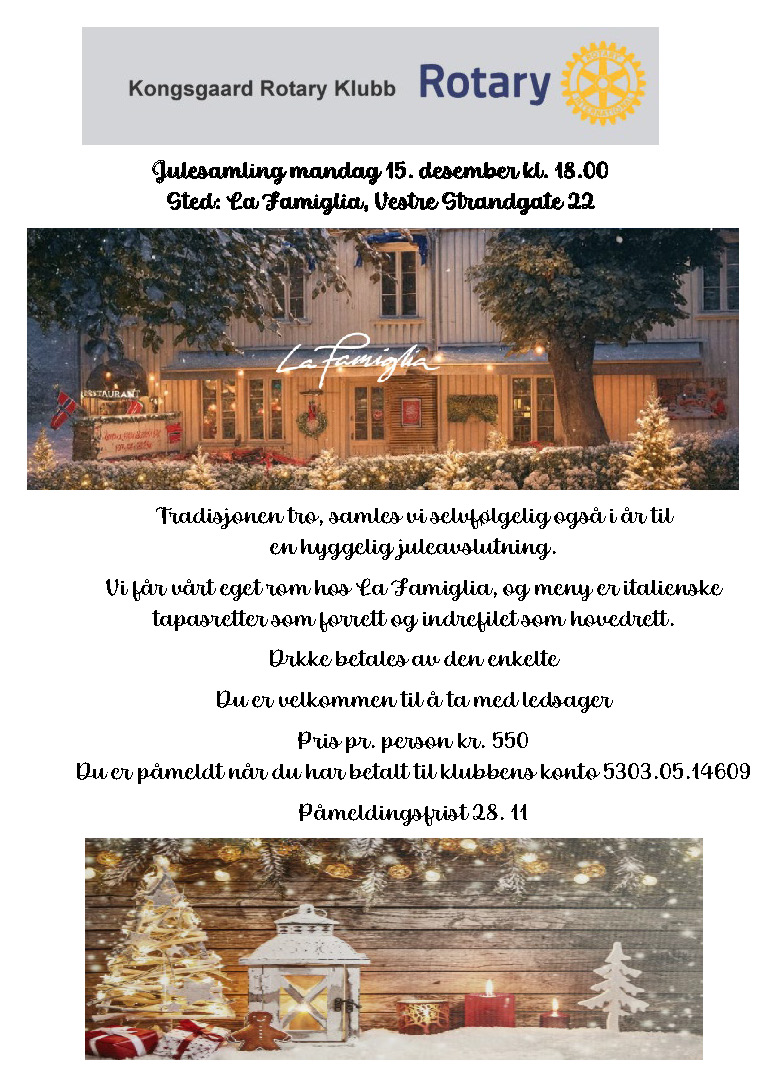 KONGSGAARD ROTARY KLUBB ØNSKER DEG